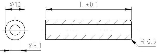 ( Ø 10 x Ø 5,1 x 6 mit einseitigem Radius 0,5 )