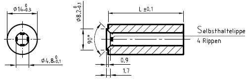 Ø14 x Ø4,8 x 2 steckbar Ø8,2x0,9 mit Senkung 1,7x90° eins. und Selbsthaltelippe